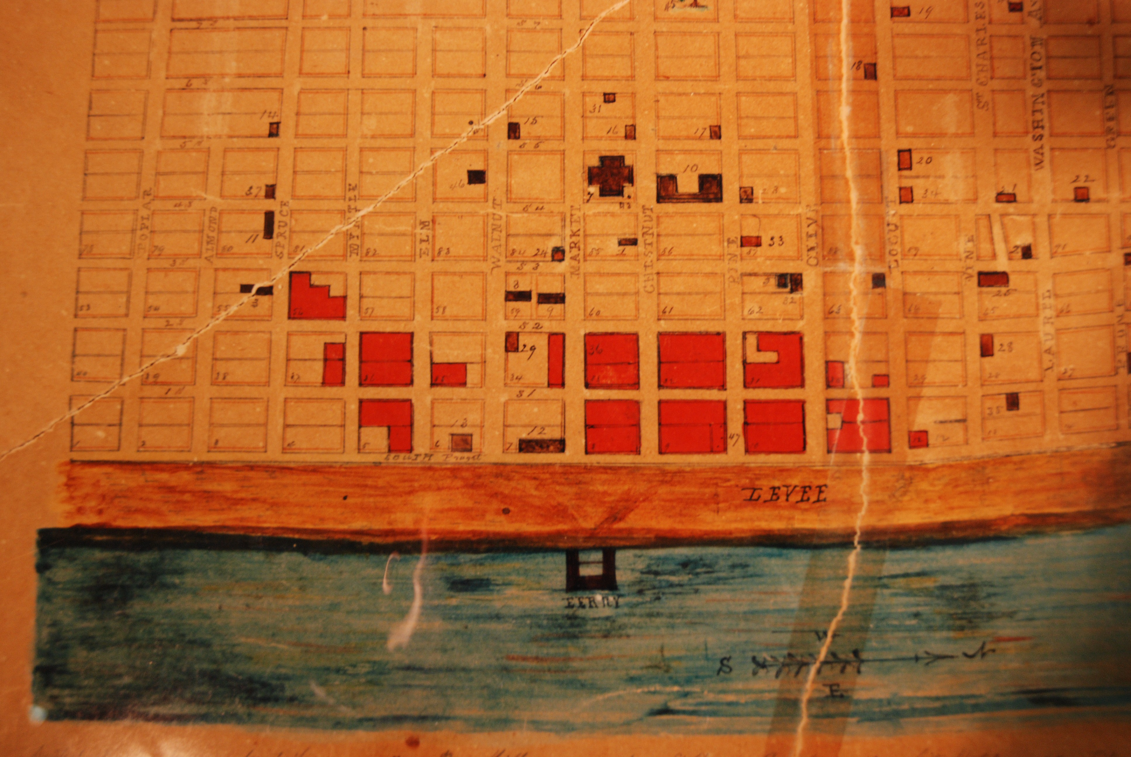 This was the type of library where you need to come in with a specific area of interest. I had to request specific files of photographs, and a little research about this ahead of time had at least prepared me as to what was available. The librarians were very helpful when it came to my other topics. They suggested several approaches to search for what I was looking for and brought me about a dozen books. My favorite item was a reproduction of a map of St. Louis showing which blocks were destroyed in the fire of 1849. The library also had newspapers from the mid-1800’s which were filled with fascinating headlines and advertisements.