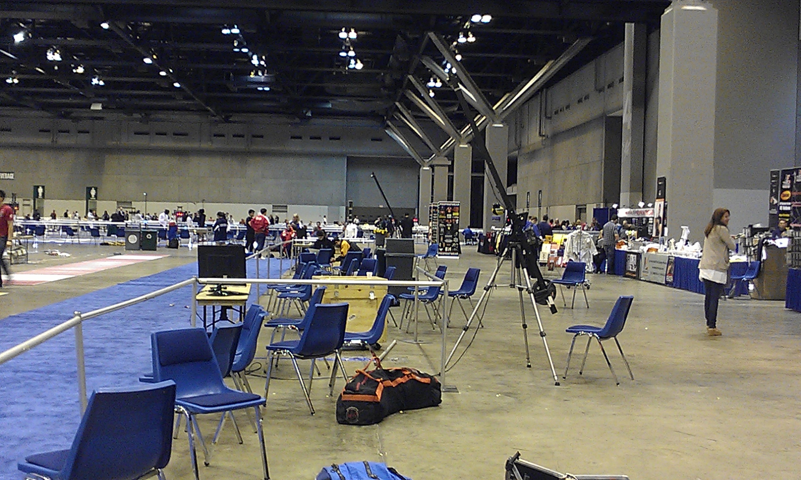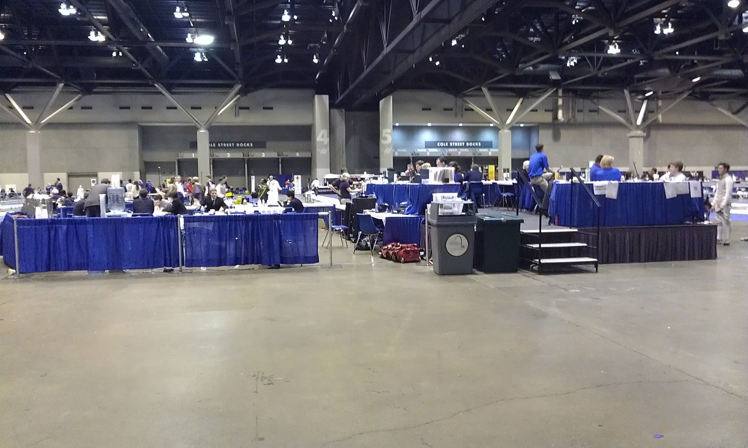 Fencing venue. For most of the day, these strips were full of fencers. But earlier in the day, I was busy fencing so this was taken toward the end of the day’s events.